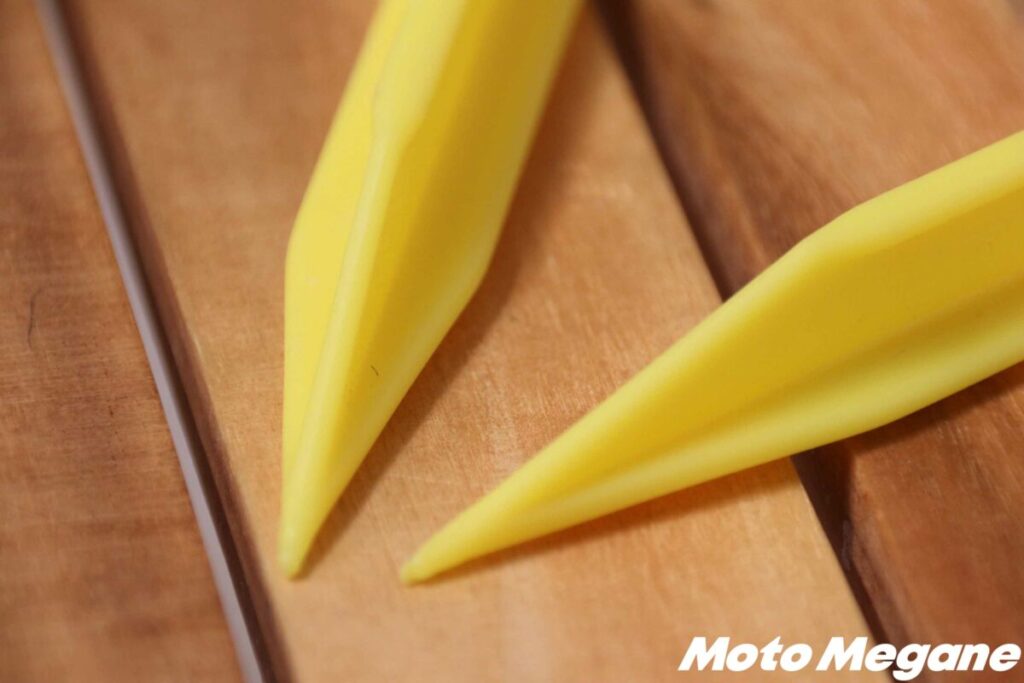 先端の銅合金は、頑丈なキャスティングペグを打ち込んでも、簡単に変形しないだけの硬度がある。またハンドルは天然木製なので滑りにくく、曲線を描いている持ちやすい形状だ。