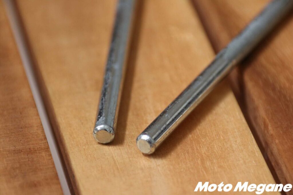 比較的抜き刺ししやすい丸型の断面だが、30cmと十分な長さがあるので摩擦抵抗が大きく、簡単に抜ける心配はない。