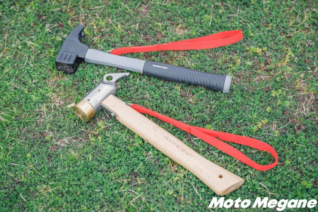やはりヘッド部分が重く、振り下ろしたときにその重量を利用してペグを打ち込むことができるハンマーが必要だ。これなら力に自信がない人でも、楽に打ち込むことができる。ではテントファクトリーには、どんなラインアップがあるのか見ていくことにしよう。