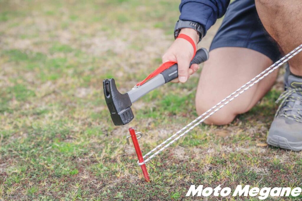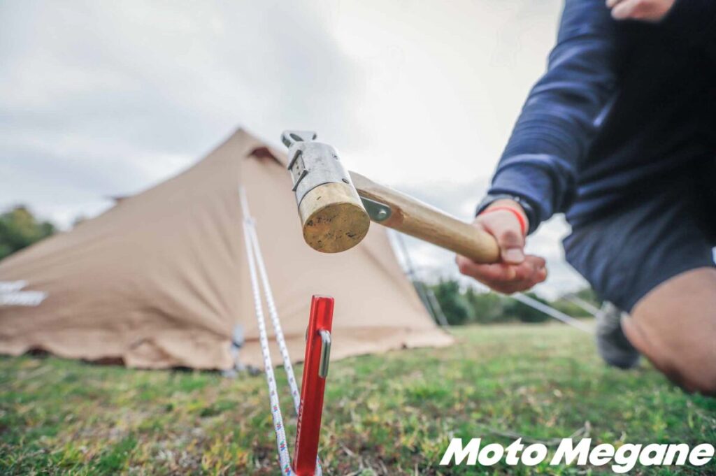 ペグだけでなく、ハンマーも別途購入する必要がある。テントやタープに付属しているハンマーは、実用性がないものがほとんど。プラスチック製であったり、金属製でも非常に簡易的な作りであったり、ペグを強く打ち込むのには向いていない。