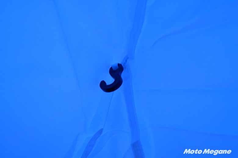入り口は二重になっていて、内側がメッシュになっています。外側はフルオープンした状態でフックに掛けることが可能です。