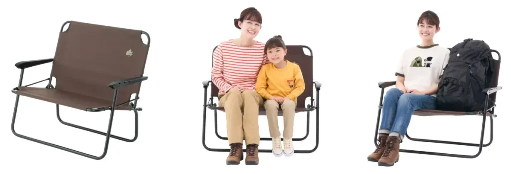 本アイテムは、親子で並んで座る場合に最適なサイズの折り畳みチェアです。