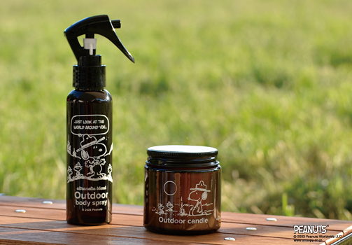 【PEANUTS】アウトドアに大活躍!スヌーピーデザインが楽しい天然由来99.9%のボディースプレーと、シトロネラブレンドのキャンドルを数量限定で発売。