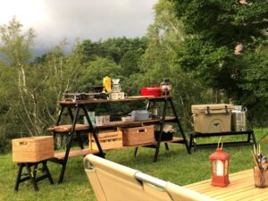 昨今のキャンプブームの中で、キャンプサイトのアレンジの一つとして、脚立に板を渡し棚のように使用するユーザーが増えています。しかしながら、「こだわりのキャンプサイトになかなか合うものがない」というお声を多くいただいておりました。