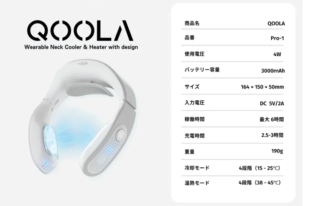 海外で約3400万円の支援を集めた話題のネッククーラー&ヒーターQOOLAがMakuakeにて日本先行販売を開始。8月限定の予約販売です。