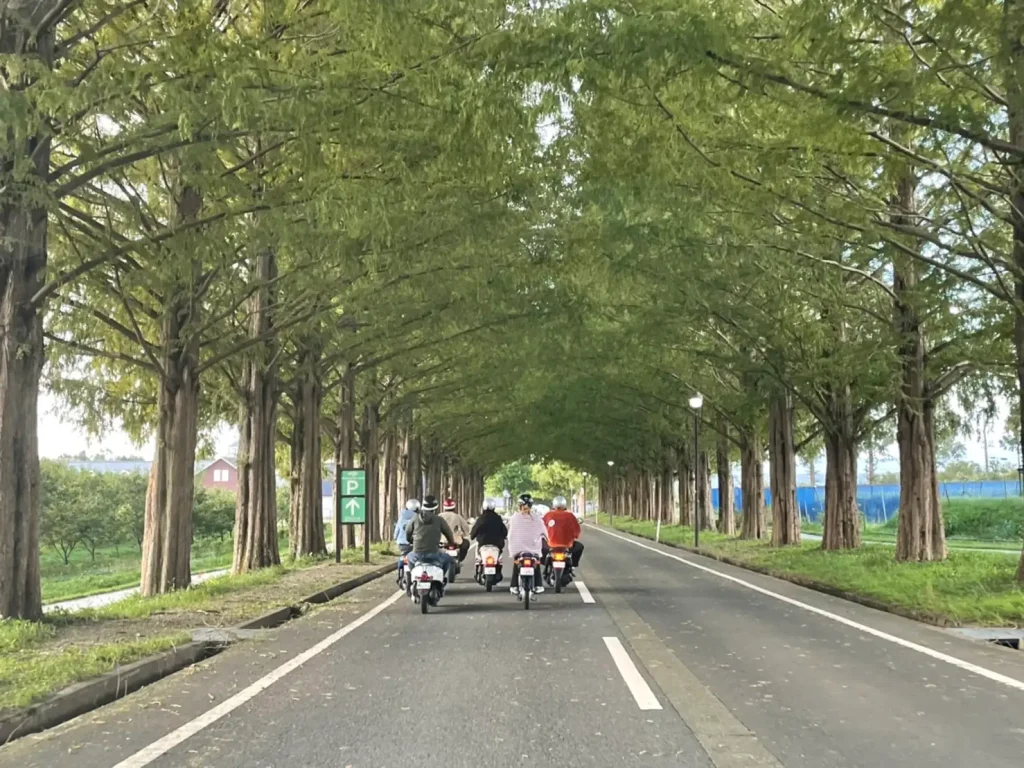 環境にやさしいEVバイクをレンタルして、全長2.5㎞ある映画やドラマ撮影にもよく使用されるマキノ高原の