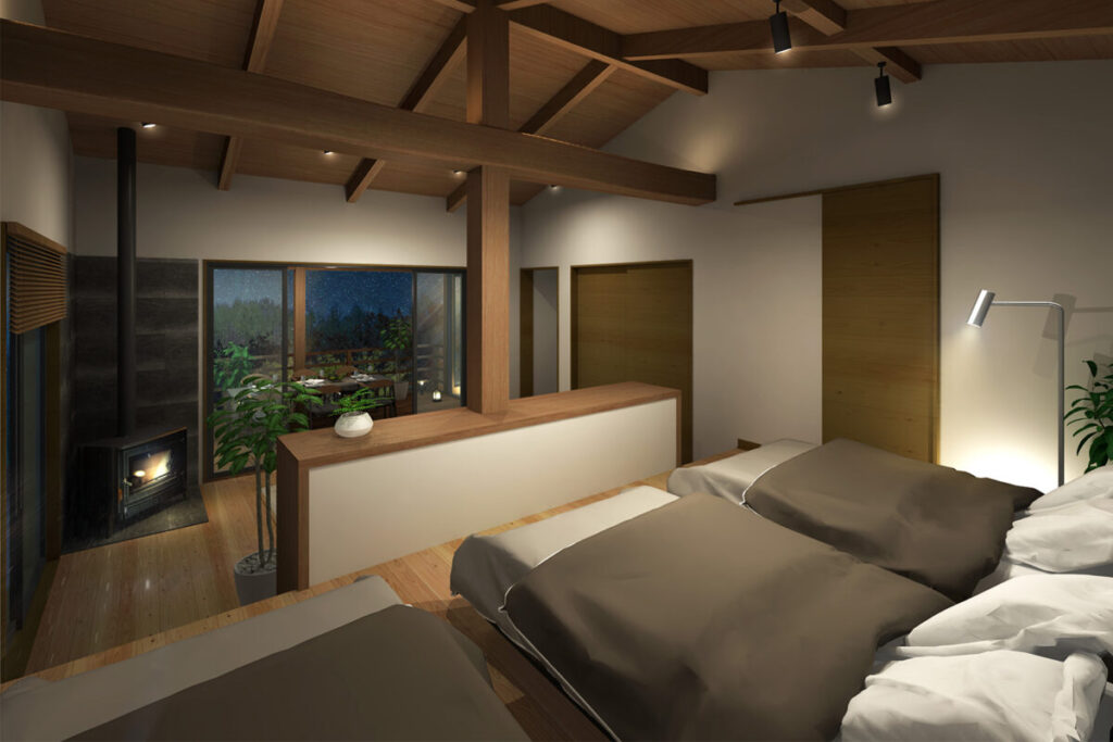 ロフト付きやサウナ付き、愛⽝同伴可能なドッグランとプール付きなど個性豊かな5種の客室タイプをご⽤意しております。