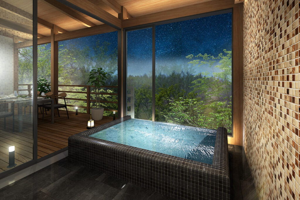 ③天然温泉⾵呂完備のハイグレード仕様 5種のプライベートヴィラ