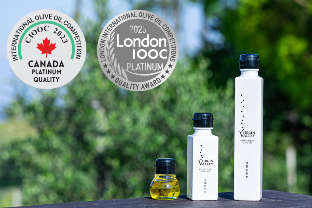 淡路島で産まれたオリーブオイルが「2023CANADA International Olive Oil Competitions」と「2023 London International Olive Oil Competitions」にて品質最高賞にあたる「プラチナム賞」をW受賞。