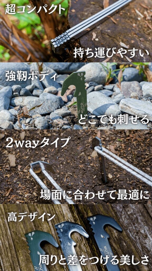 ペグは必須アイテムだからこそ、より軽くてコンパクトに持ち運べるとよりキャンプの質を上げることができます!