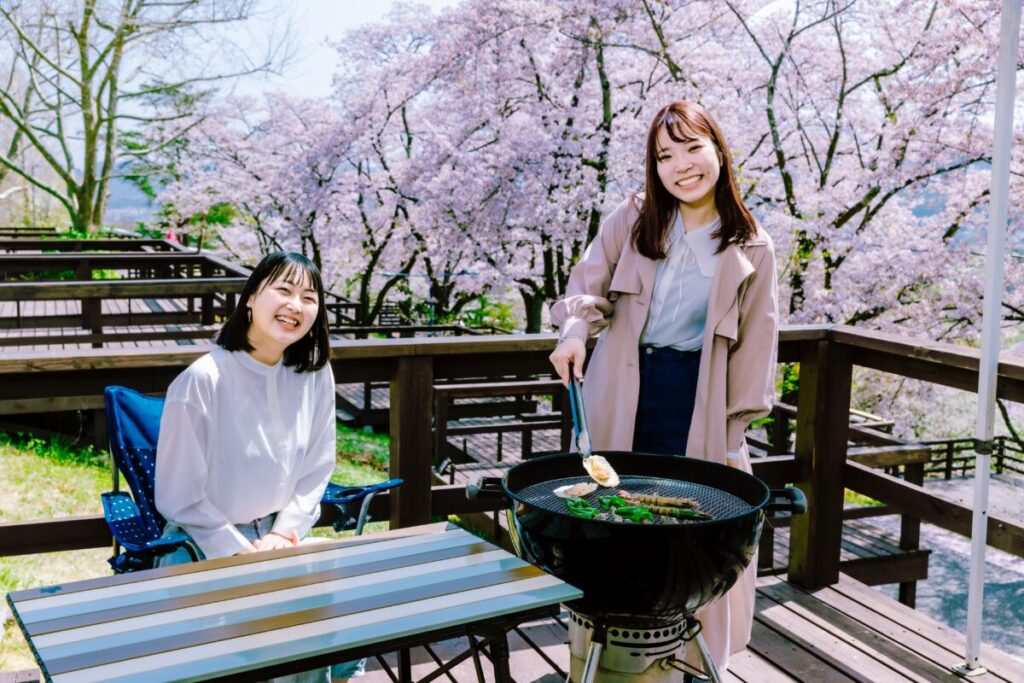 傾斜のある地形を生かして作られた関東最大級のバーベキュー場「ワイルドクッキングガーデン」では、「桜チップ」でお肉に桜の香りを加えてバーベキューを楽しめる「お花見BBQ」プランが楽しめます。