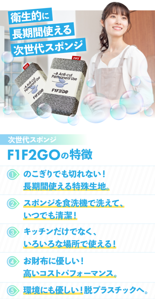 F1F2GOの特殊繊維は耐久性が高く、長期間使い続けることが可能なので節約になり、家計を助けます。