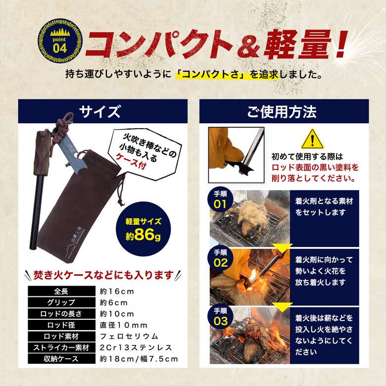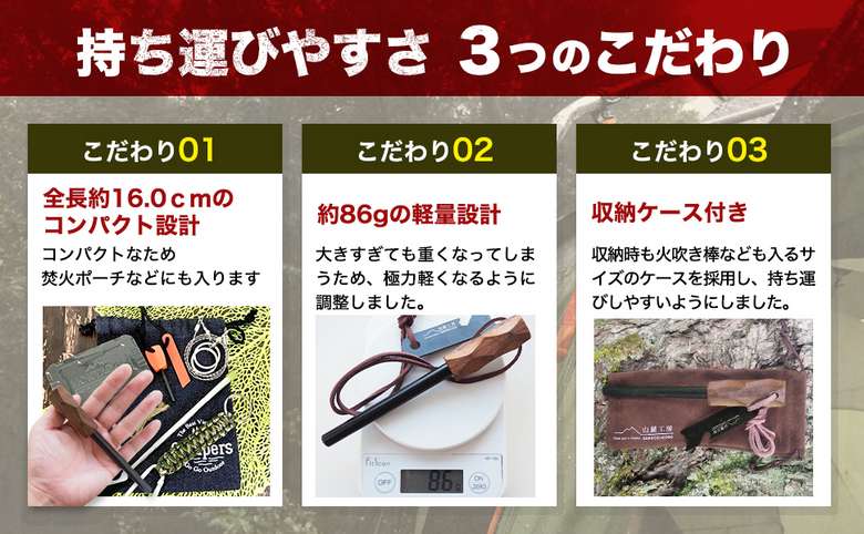 《「極太ファイヤースターター」の持ち運びやすさ 3つのこだわり》