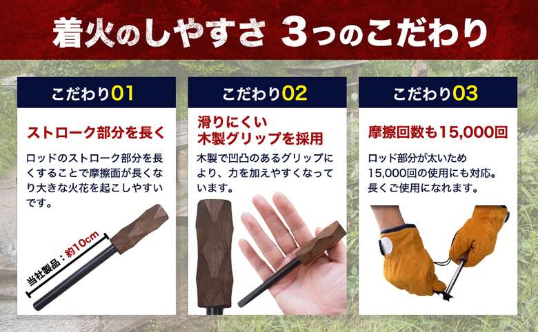 「極太ファイヤースターター」の着火のしやすさ 3つのこだわり