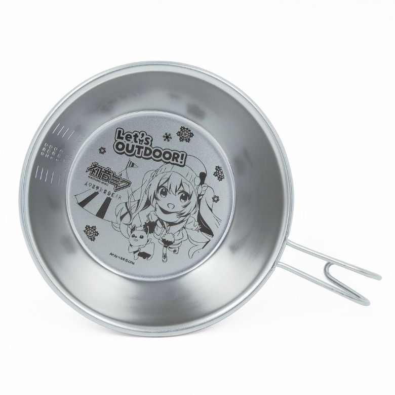 「初音ミク×AOZORAGEAR シェラカップ」は、アウトドアギアの必需品。定番サイズのシェラカップ。衛生的でサビに強く耐久性に優れたステンレス製。スタッキング収納出来、携帯性が良いのでキャンプやアウトドアに最適である。広口でコップや食器として使えるだけで無く、直火にもかけれらるため調理器具にもなる万能アイテム。「初音ミク×AOZORAGEAR」のオリジナルイラストがコレクションアイテムとしてもキャンプサイトを彩る。金物の街、新潟県燕市製。