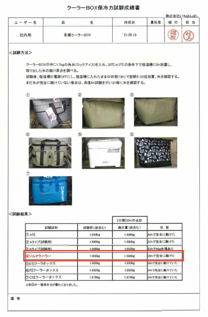 さらに、保冷力テストでは、あの最強クーラーと呼び声の高い、ソフトクーラーに匹敵する保冷力を実現した。あの最強ソフトクーラーと呼び声の高いA社の保冷力に匹敵する、保冷力の秘密は、独自の技術で開発した6層構造、厚みは20.45mm。