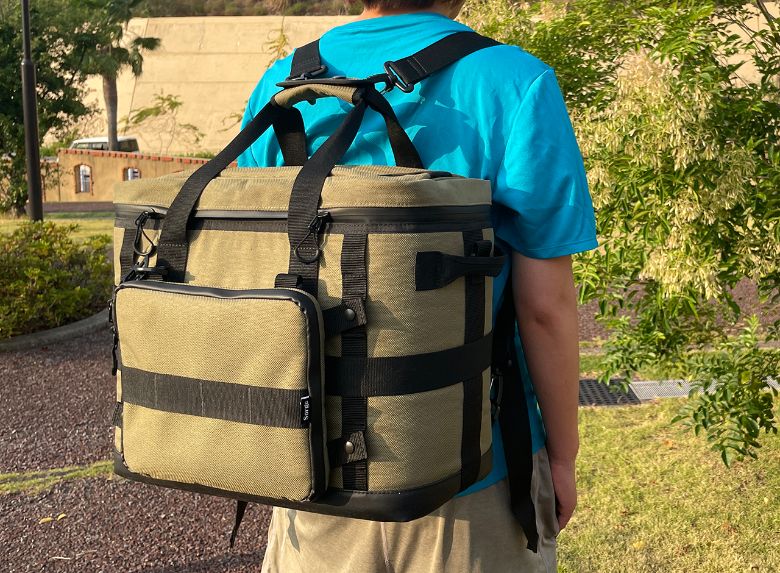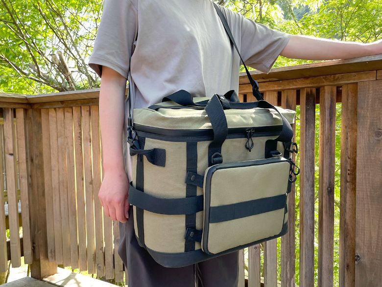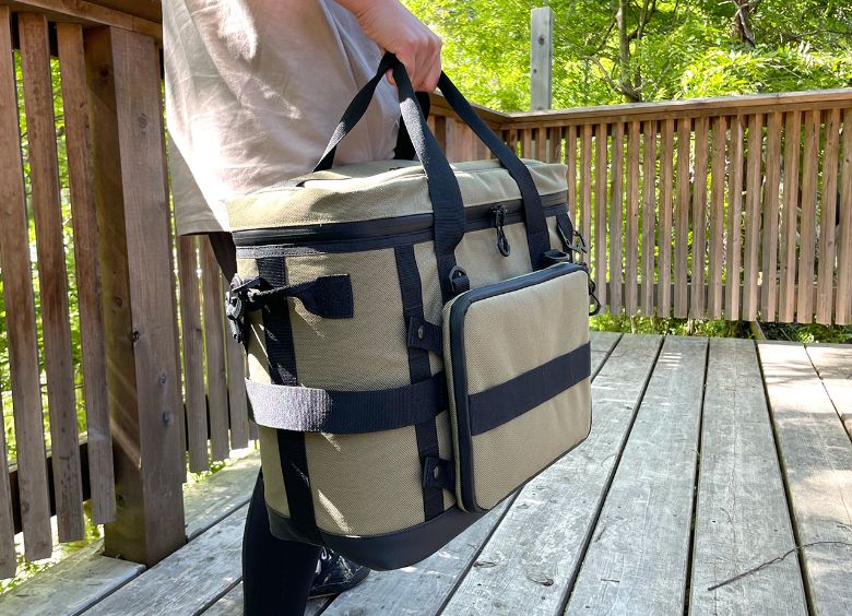 ハードのクーラーボックスに比べると保冷力は、落ちるが、1泊2日程度のキャンプであれば、サイズ感もちょうどよく、十分な性能だ。