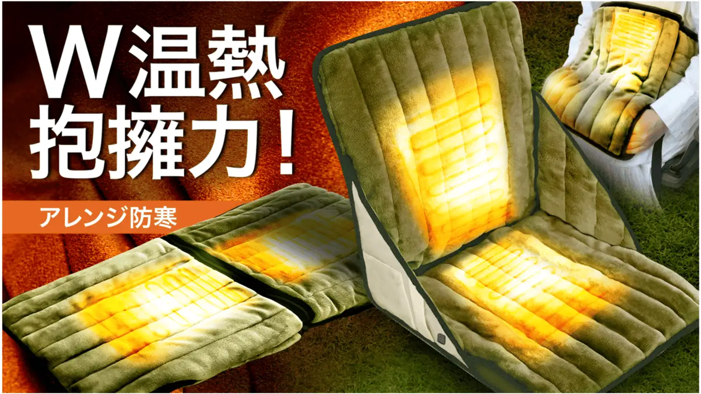 【新発売】W温熱ヒータークッション!起毛・撥水仕様で多彩自由変形。洗えて持ち運べる防寒具!