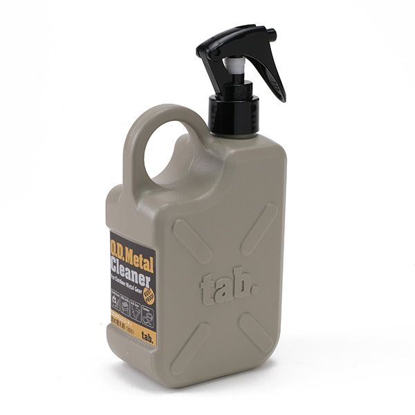 「 tab.ODメタルクリーナー」は、掃除やメンテナンスが面倒なアウトドアギアの汚れを、水なしで手軽に掃除ができる、タブオリジナルの洗浄保護剤で、噴霧して布やキッチンペーパーで拭き取るだけで洗浄と防錆効果が得られるクリーナーだ。