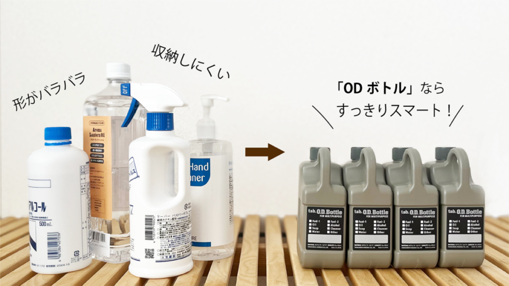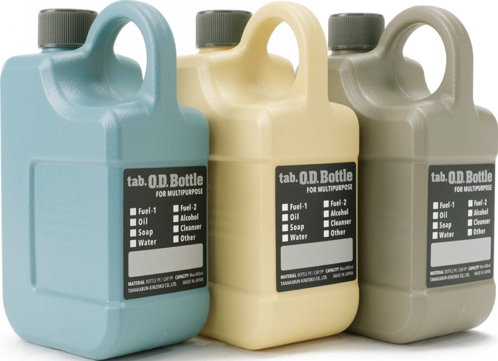 本体原料には帯電防止剤を配合しており、 ランタン用のオイルやアルコールなどの燃料も入れることができます。 また食 品衛生法に適合しているのでドリンクボトルとしても使用可能。 食用油やソース等の調味料も入れることができます。 本体は書き込み可能なラベルシール付きで、 複数の OD ボトルを使用する時にも用途別にラベリングできて便利です。
