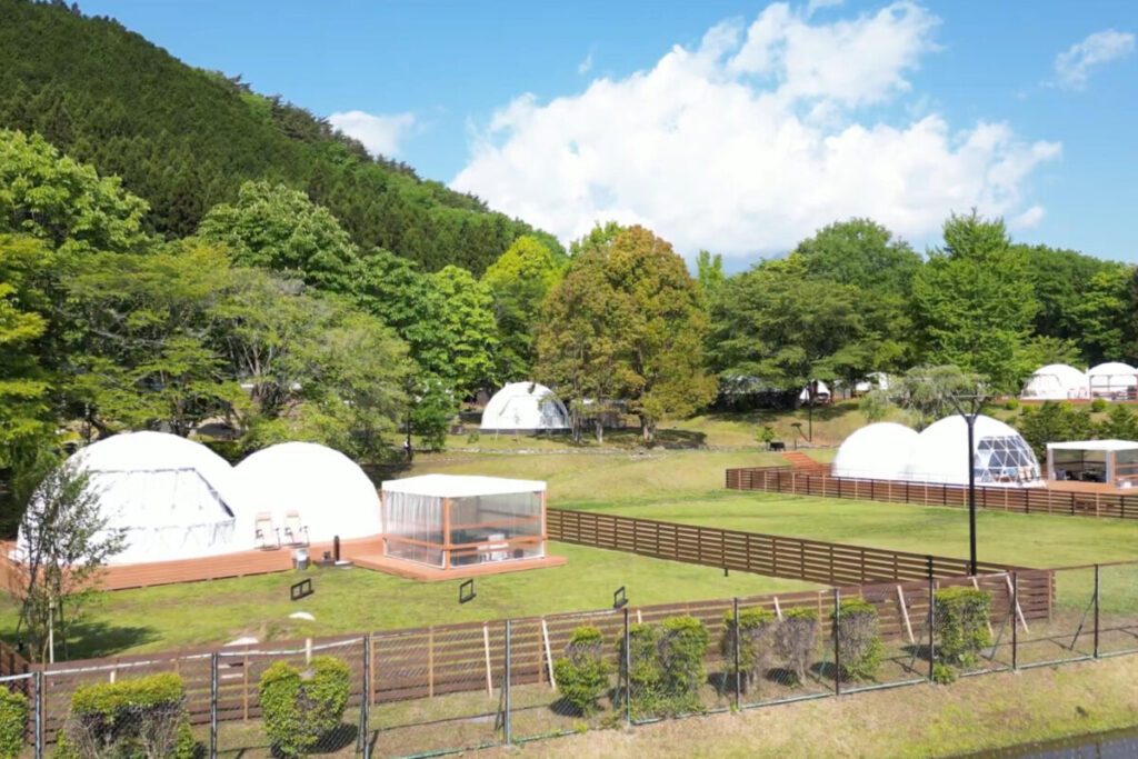 約32,700平米の広大な敷地に大小合わせて18基のドームテントを贅沢に配置した同施設は、大自然をバックに地元食材をふんだんに使ったバーベキューを楽しむことができる大型グランピングリゾートだ。電動キックボードの貸し出しや木工体験などのアクティビティも登場し、女子会プランや専用ドッグラン付きテントも用意されている。この夏は、家族や愛犬と一緒に大自然の中でゆったり過ごしてみてはいかがだろうか。