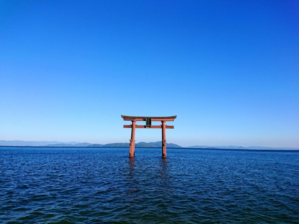 琵琶湖上にたたずむ大鳥居がフォトスポットとして有名な神社。