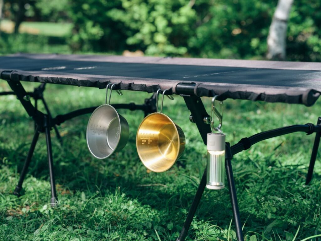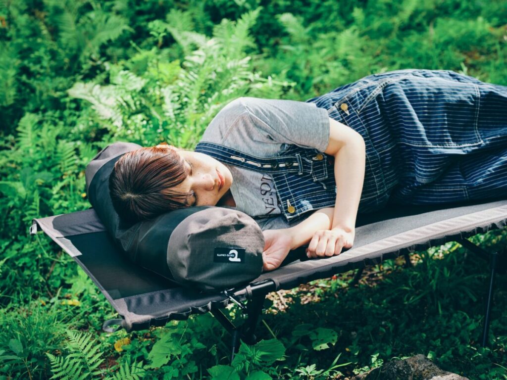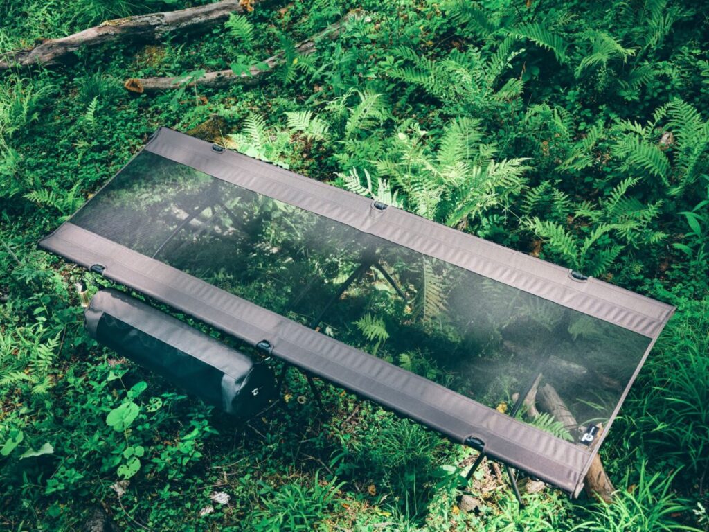 深く沈み込まず、寝心地の良い張り具合を実現。通気性に優れたメッシュ素材を使用し、暑い夏の日は涼しく、背中の蒸れを解消。ポールを通す箇所にはメッシュガーゼを縫い込み、軋み音を緩和し、キャンプ場での快眠を追求しました。レッグポールの取り外しにより、ハイスタイルとロースタイルに切り替え可能で、キャンプスタイルに合わせて使い分けることができます。サイドには便利なウェビングループがついており、小物を吊り下げたり、収納ケースを掛けて小物入れにして使うことも可能です。