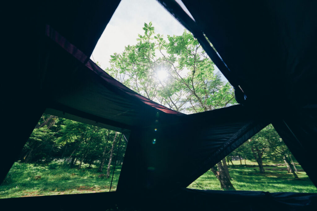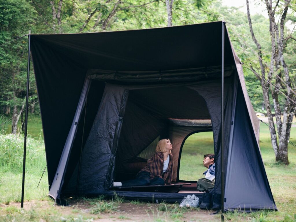 テントの内側には黒のPU加工が施されており遮光性に優れ、日差しの強い日でも快適な室内を実現。実用性と心地の良い空間、そして高いデザイン性を兼ね備えています。
