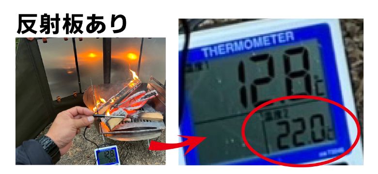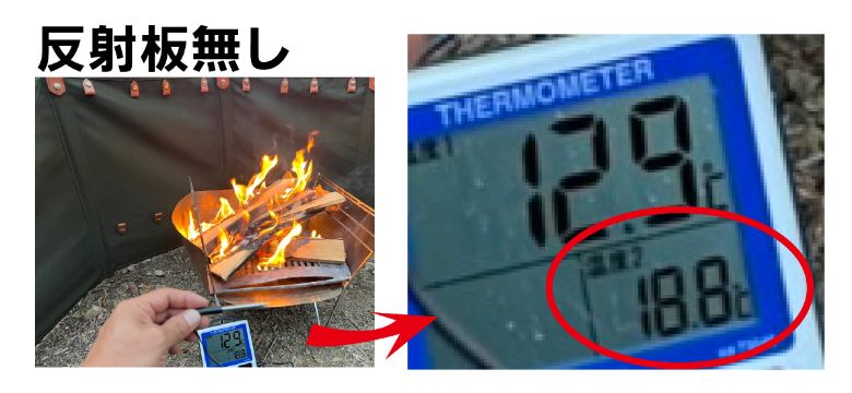 反射板があることにより、無しに比べ3~4℃ほど、温度が高くなった。