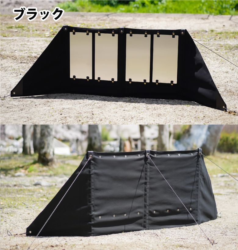 アルミ板の反射熱効果を利用して極暖空間を作り出すこと可能となっており、また板は取り外しができるため、陣幕としてオールシーズン活躍すること間違いなし。