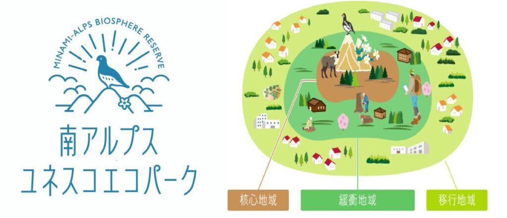 2014年6月、南アルプスユネスコエコパークが正式に登録承認された。ユネスコエコパークとは、生態系の保全と持続可能な利活用の調和(自然と人間社会の共生)を目的として、1976年にユネスコが開始。地域の豊かな生態系や生物多様性を保全し、自然に学ぶと共に、文化的にも経済・社会的にも持続可能な発展を目指す取り組みである。