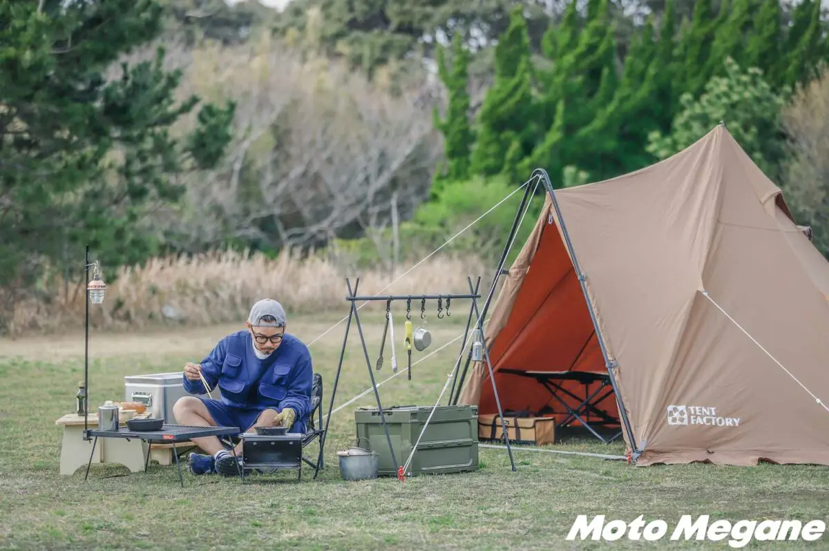 そんななかで注目したいのがワンポールテント。ポール1本で設営するシンプルな構造なのでひとりでも建てやすく、収納サイズもコンパクト。ツーリングキャンプにはうってつけのテントだ。