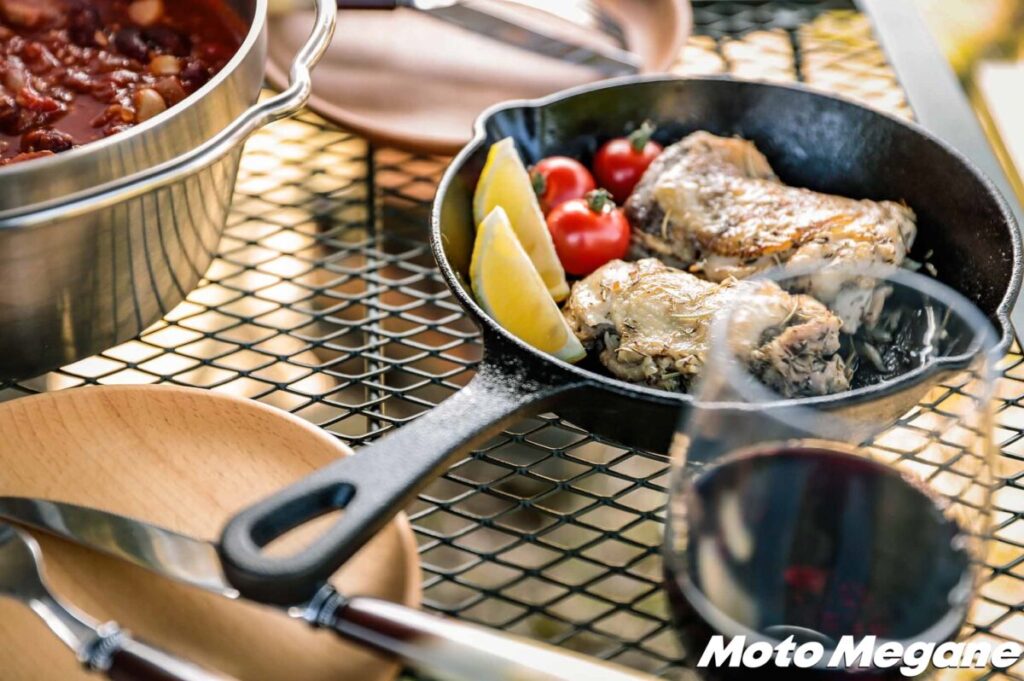 それどころか、焚き火の上にセットしてグレートとして使うことも可能だ。ダッチオーブンやスキレットを安定した状態で置けるので、安心して調理できる。
