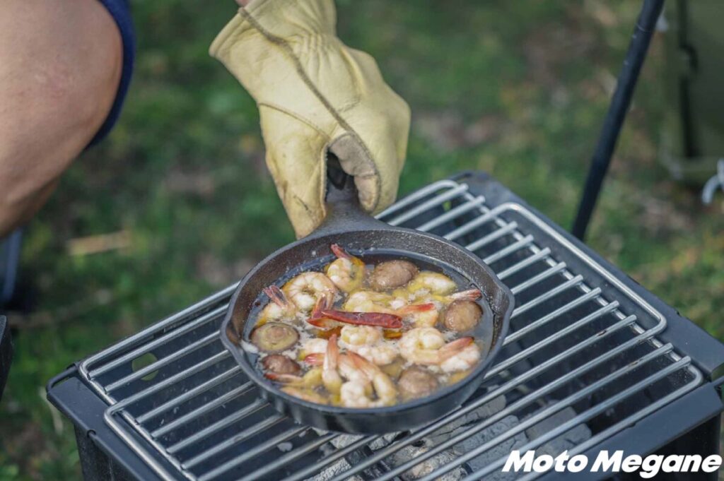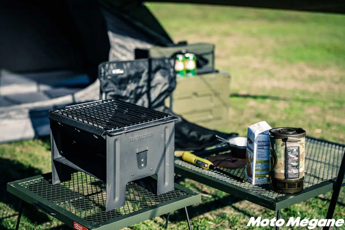 日帰りBBQなら少々大きめなBBQグリルでもいいが、宿泊するキャンプの場合は荷物が多くなるので、できるだけかさばらないほうがいい。とくにバイクでのキャンプでは、積み込める荷物の量も限られるので、極力コンパクトな物を選びたい。