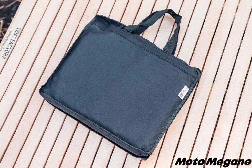 持ち運びに便利なキャリーバッグも付属。生地は厚手なので、少々乱暴に扱っても破ける心配はない。ファスナー付きなので、簡単に中から出てしまうこともない。
