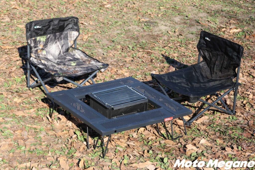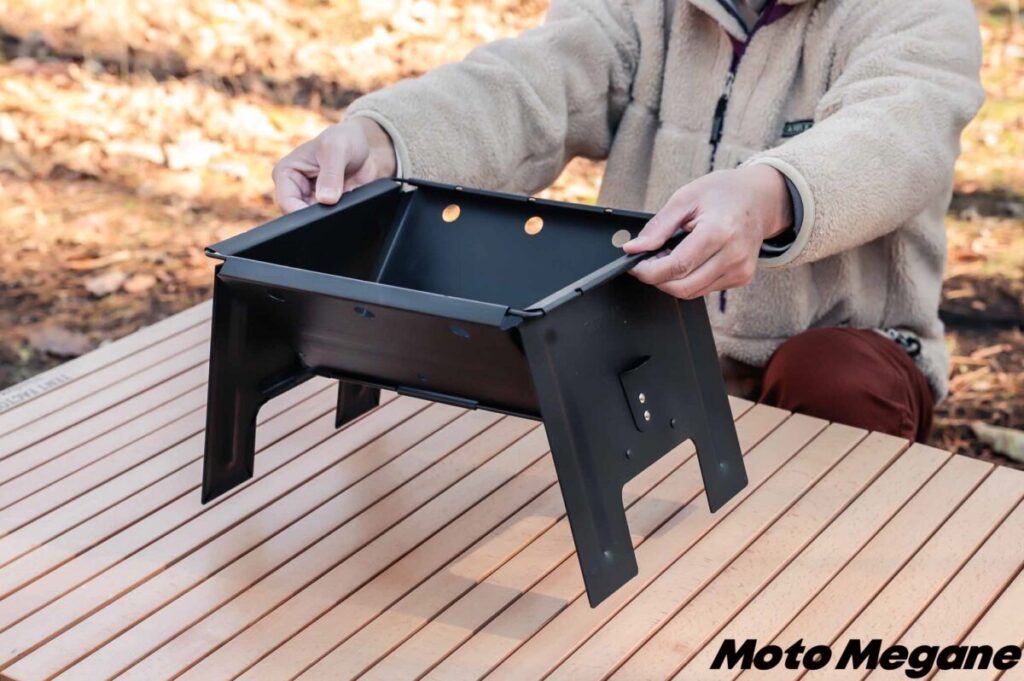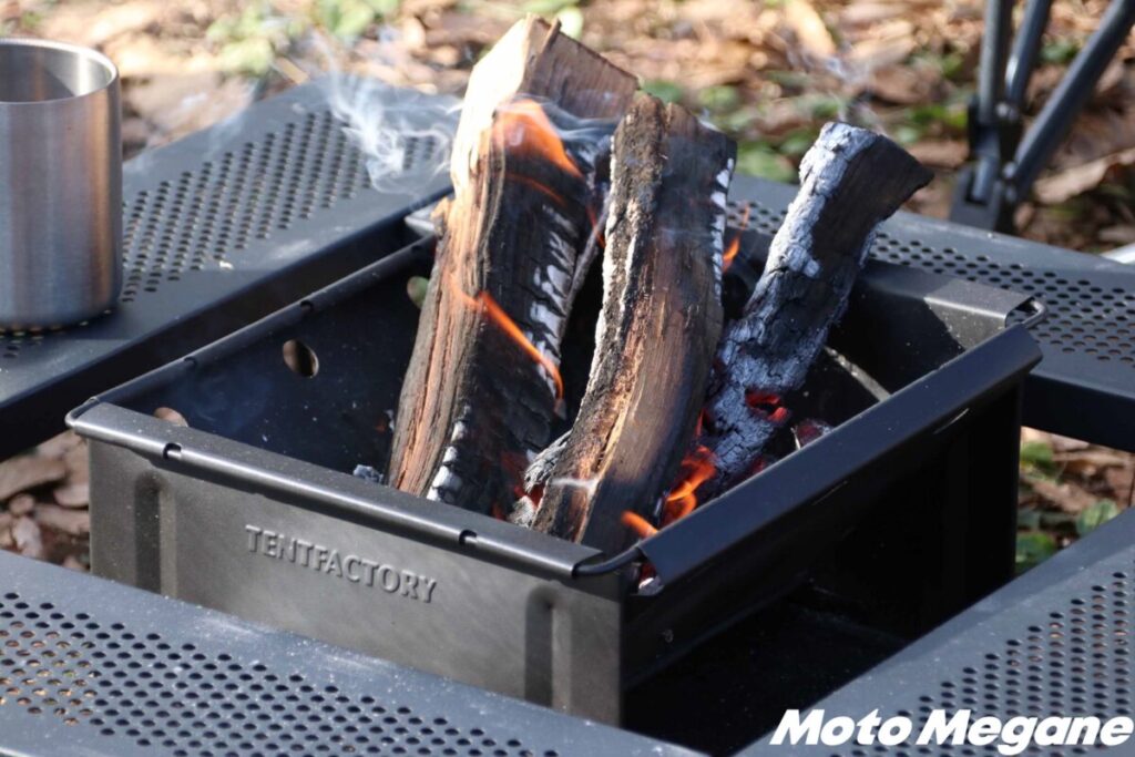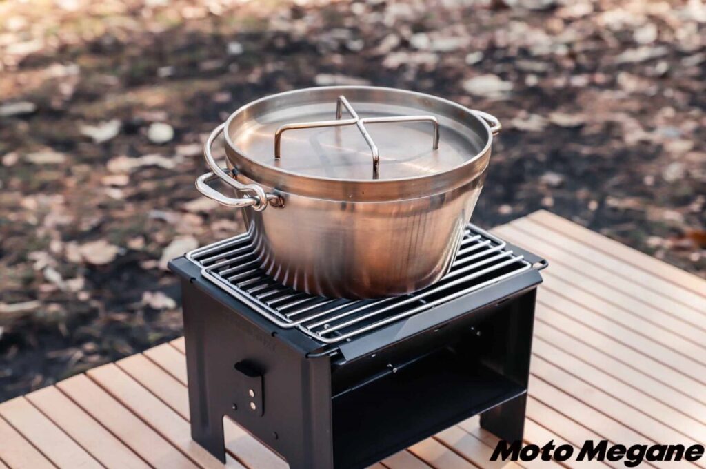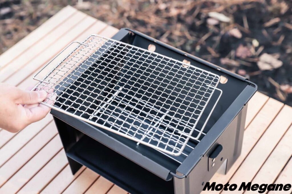 BBQや炭火調理、焚き火も楽しめる「FDグリル32-500耐熱 (ロストルセット)」。1台でさまざまな使い方が楽しめるので、荷物を少なくしたいツーリングキャンプにはピッタリのアイテムだ。