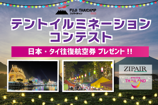 FUJI THAICAMPに参加するキャンパーがエントリーできるコンテストで、各自持ち込んだテントをLEDなどの装飾品でデコレーションし、グランプリ(2組)に選ばれた方には日本・タイ往復ペアチケットをプレゼント致します。