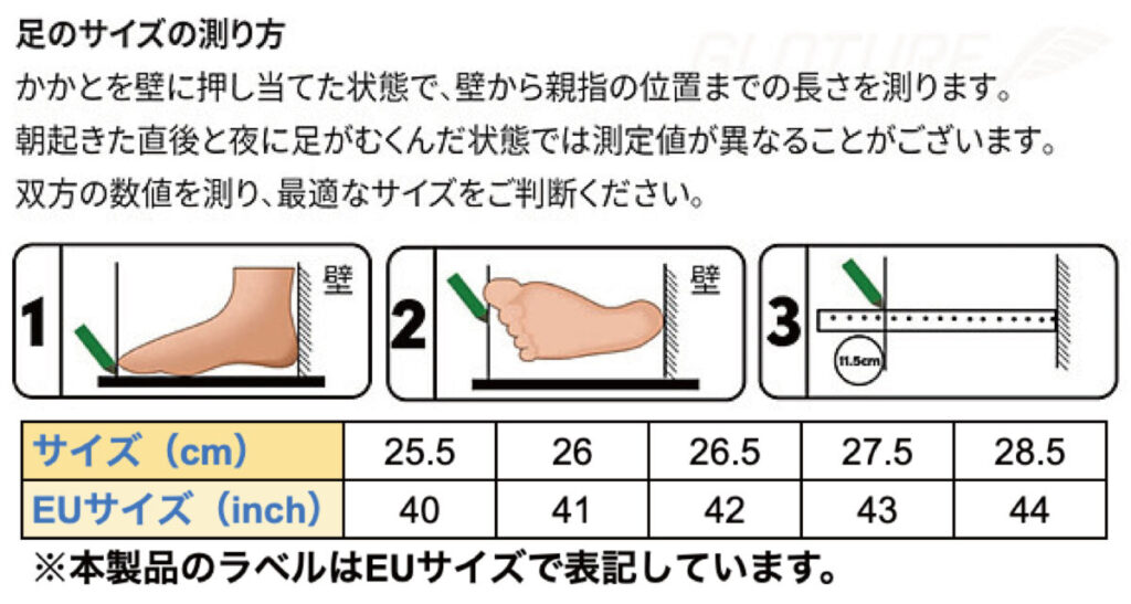 ※サイズは25.5cm〜28.5cmをご用意しております。ご自身で足のサイズを測定される場合は±0.5cmほどの誤差を見込んでモデルをお選び下さい。