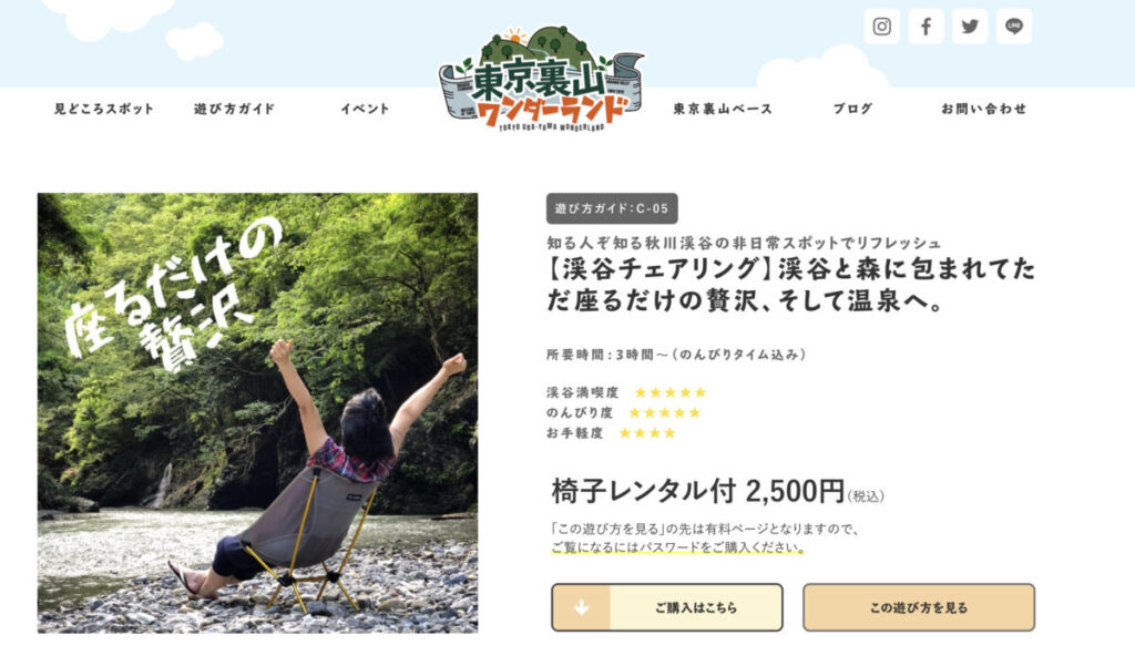 ・東京・秋川渓谷の看板旅行商品として「水辺体感」ツアーのプロデュース