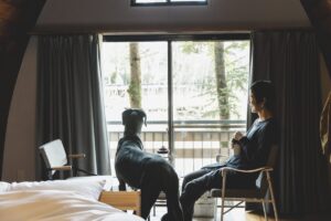 キャンプ、ロッジ、キャビンの 3 タイプからなる宿泊施設と、