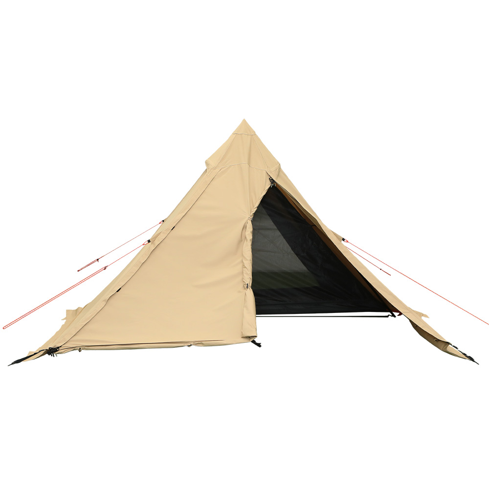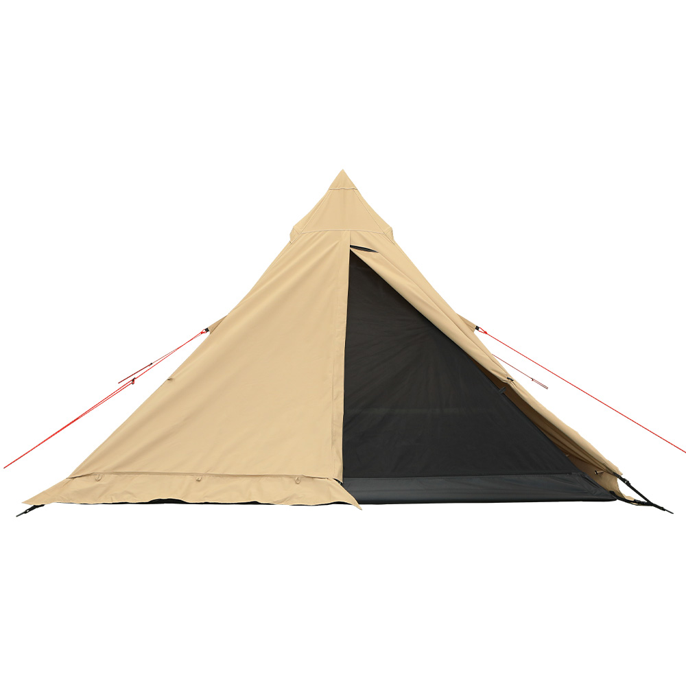 アウターテントには火の粉が燃え広がりにくいポリエステル/コットン混紡素材を採用。これにより、テントの近くで焚き火を楽しめます。