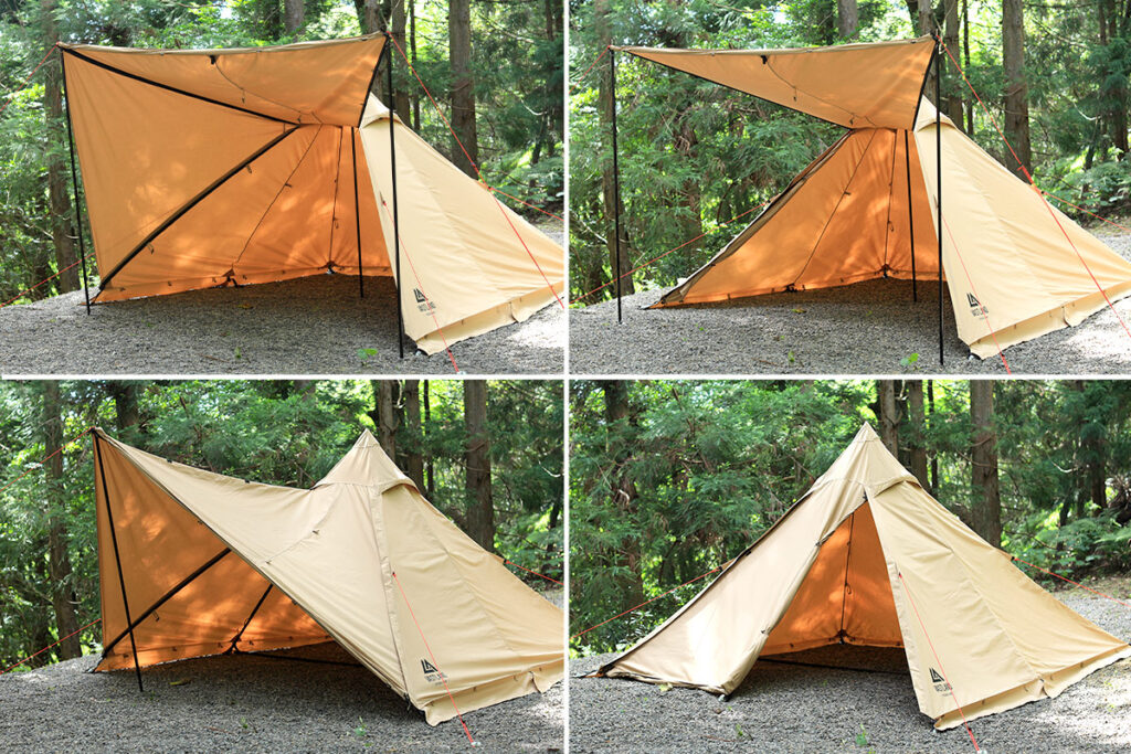 スタイルに合わせて選べるワンポール or ツーポール仕様のTCティピーテント ソロ