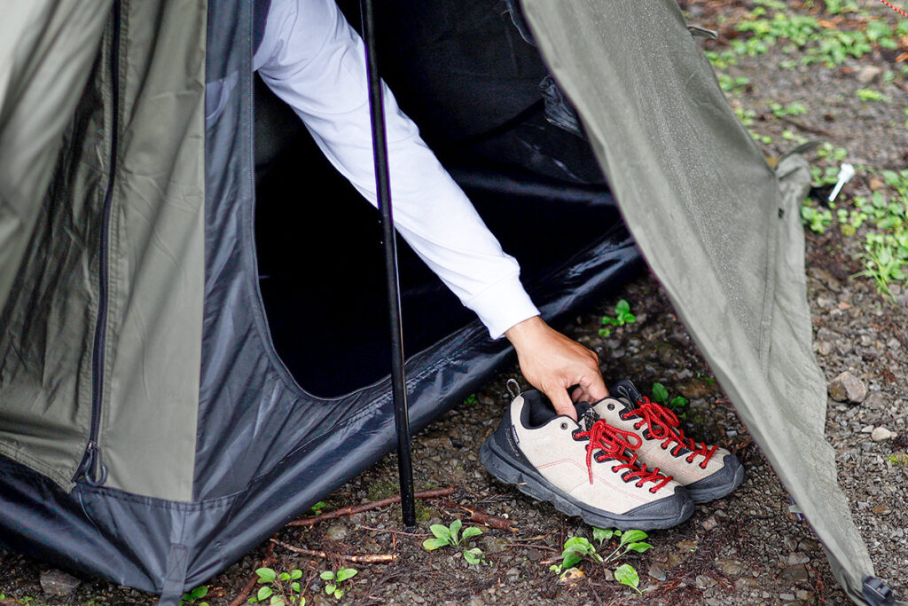 インナーテントには正面だけでなく両サイドにファスナードアを設けています。これにより、靴など前室に置いた荷物のアクセスを容易にしています。