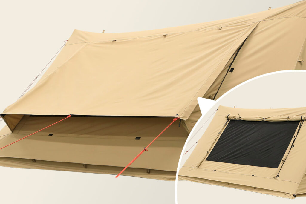 また、インナーテントのポリエステル・コットン混紡生地はロールアップ可能、大型ベンチレーションや巻き上げ可能なスカートを配置したりとオールシーズンで使える設計となっています。