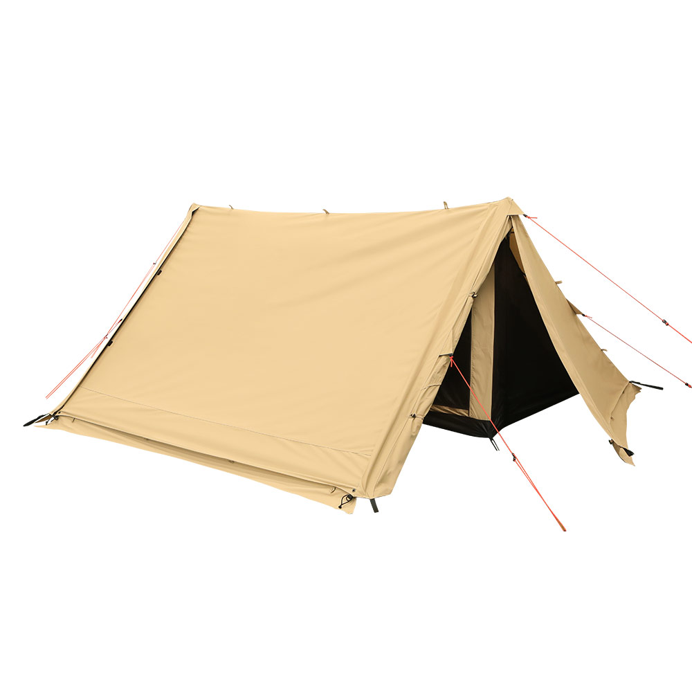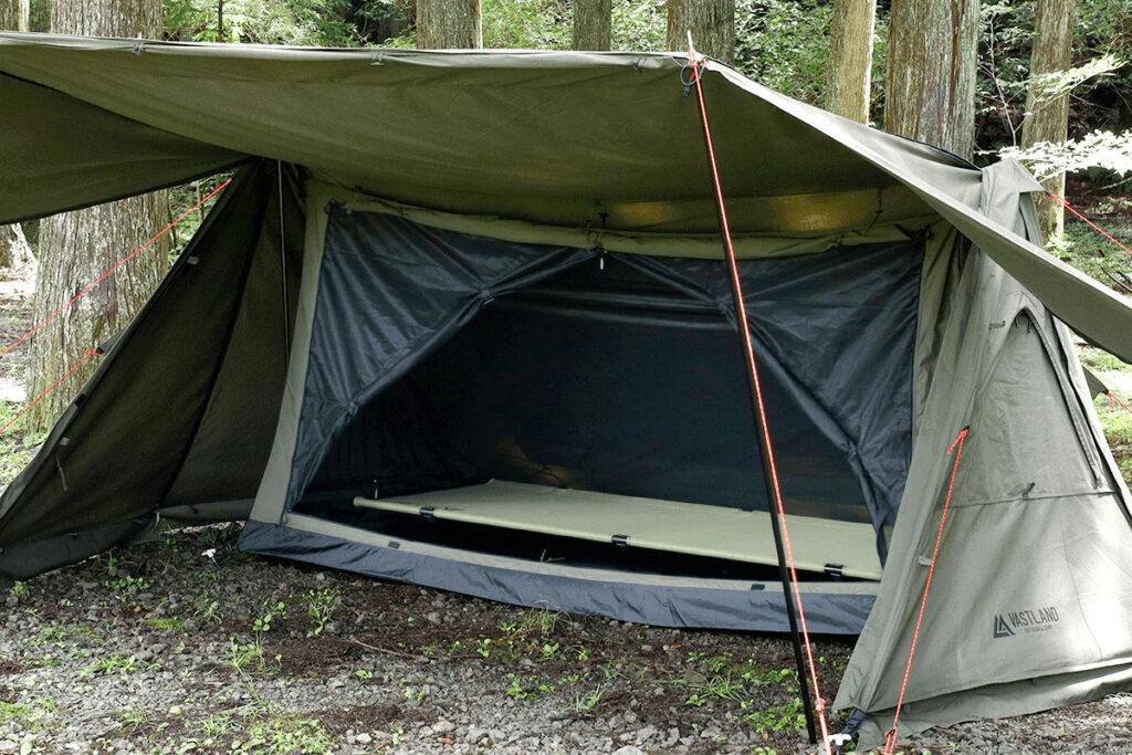 ~焚き火を楽しむために、アウターテントだけでなく、インナーテント(フロンドドア部)にもTC(ポリエステル・コットン)混紡素材を使用~