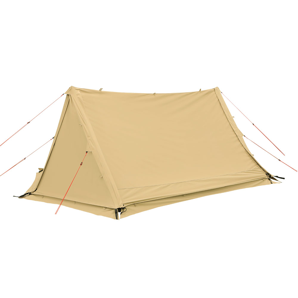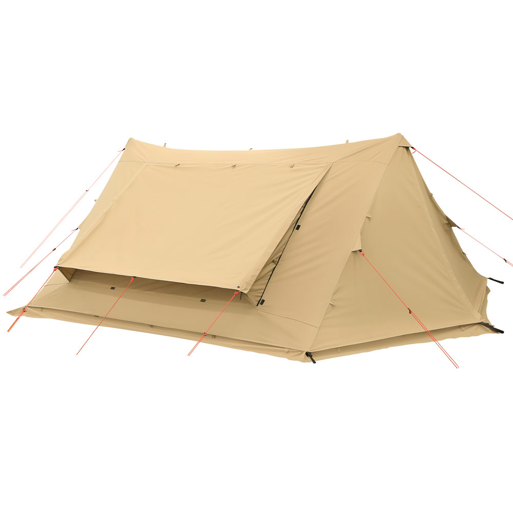 アウターテントには火の粉が燃え広がりにくいポリエステル/コットン混紡素材を採用。これにより、テントの近くで焚き火を楽しめます。