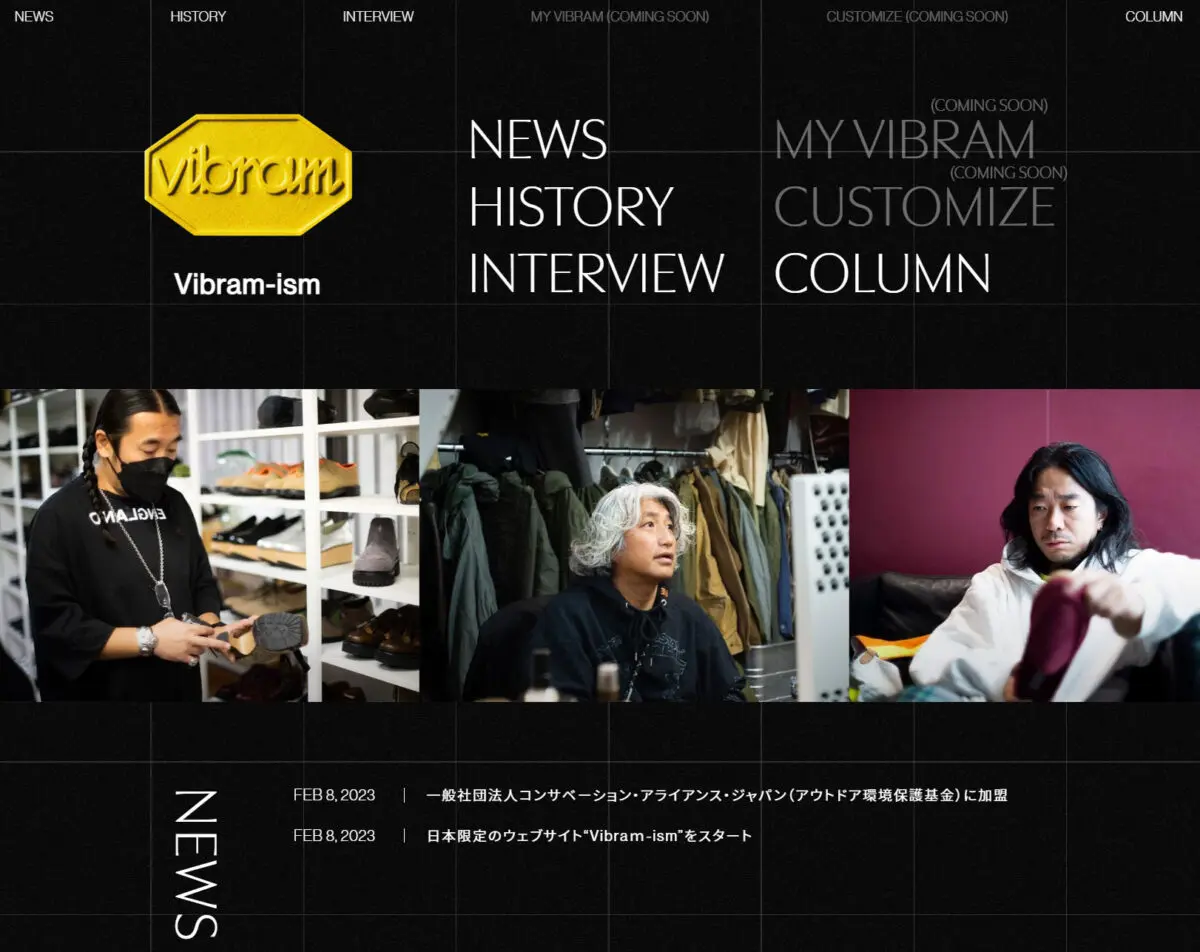 イタリア発ソールメーカーの日本支社であるヴィブラムジャパン株式会社は、ブランドヒストリーやコンパウンド秘話を公開するウェブサイトVibram-ismを立ち上げた。靴産業に革新をもたらしてきたソールメーカーが持つ、開発へのこだわりや歩みを紹介するコンテンツとなっている。また、ファッションデザイナーやスタイリストのヴィブラムに対する想いやエピソードなども、インタビューやコラム形式で公開されている。