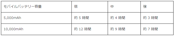 ※)電圧5V / 電流1.0A~2.0Aのモバイルバッテリーをご使用ください。