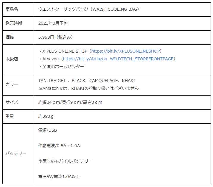株式会社エクスプラス(東京支社、https://www.xplus.co.jp/、以下エクスプラス)は、「WAIST COOLING BAG(ウエストクーリングバッグ)」をWILDTECHブランドで2023年度も販売いたします。