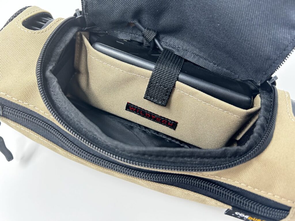 ファンを動かすためのモバイルバッテリー収納だけでなく、収納部分を確保することで、ウエストバッグとしての実用性を高めました。
